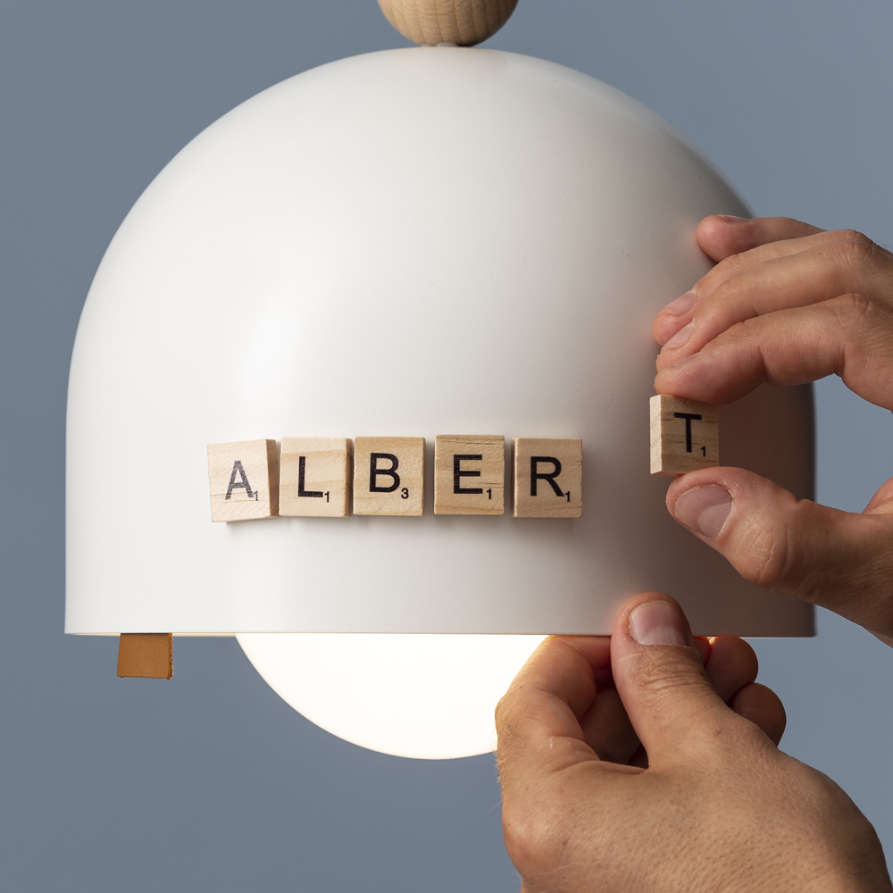 Letras de madera imantadas para personalizar la lámpara DOLLY.